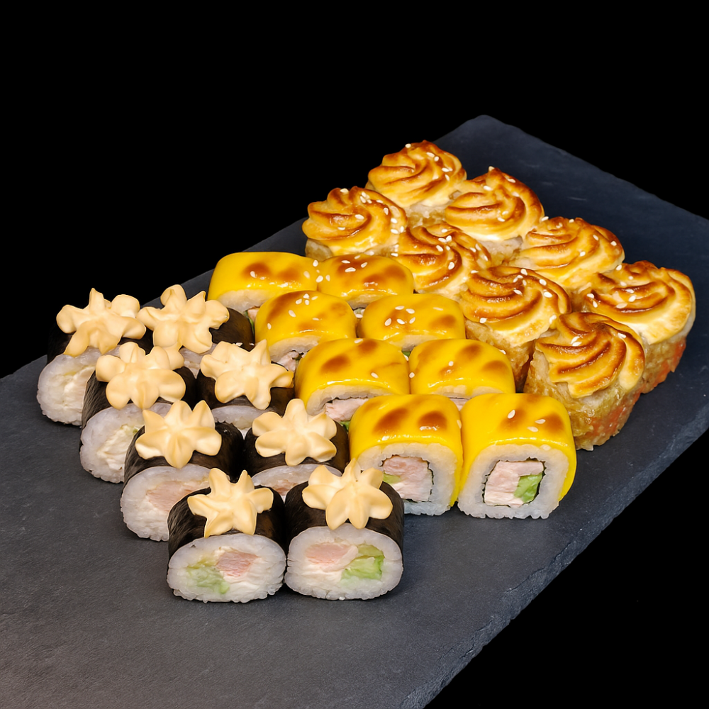 Ролл «Оранжевый Токайдо», Ролл «Хиями», Ролл «Сырный краб».